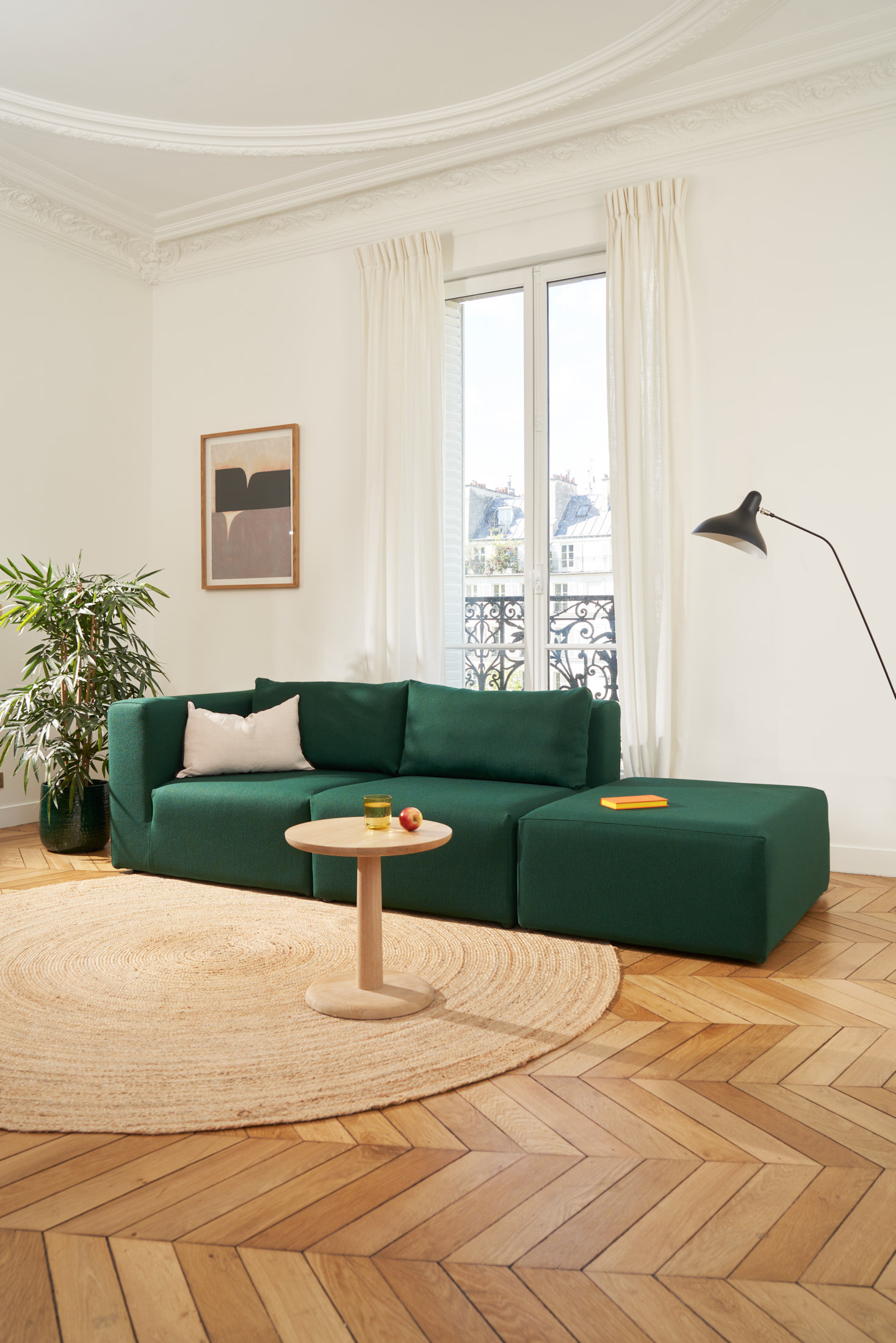 For the launch of the BRIDGE modular sofa by TIPTOE, we crafted a visual narrative that highlights the product's clean lines and adaptable design. The shoot took place in a Haussmannian-inspired space designed by architecture studio HEJU, characterized by its clean lines and pastel tones. This refined environment provided a serene backdrop, allowing the BRIDGE collection's versatility and minimalist elegance to take center stage. Through thoughtful composition and natural lighting, the images aim to reflect the sofa's functionality and aesthetic appeal in contemporary living spaces.